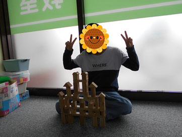 ある日の休憩時間、黙々とつみきで何かを作っていたお子さんがいました。何を作っているのかな?と不思議に思っていると、見事なつみきのお城が出来上がりました。「立派なお城だね」とお子さんに話しかけると「つみきが入ってた箱の見本を見て作ったんだよ!」と教えてくれました。見比べると、それぞれのパーツを使う箇所や置く位置など見本そのものでした。物を正確に見て真似る力、集中して作り続ける力、どちらも素晴らしいなと感心しました。